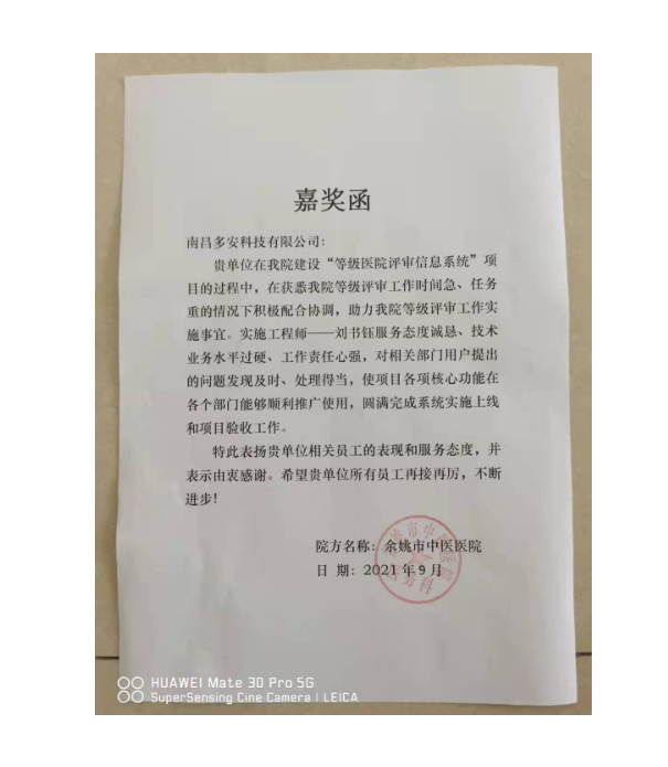 • 多安“等級創建一體化平臺”助力婺城區人民醫院“創二甲”